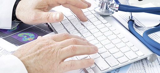 Wegen eines besonderen medizinischen Falls möchte ein Arzt sich fachlich mit Kolleginnen und Kollegen beraten. Dabei nutzt er eine gemeinsame Dokumentationsplattform im Internet, weil die Expertinnen und Experten nicht an einem Ort sitzen.